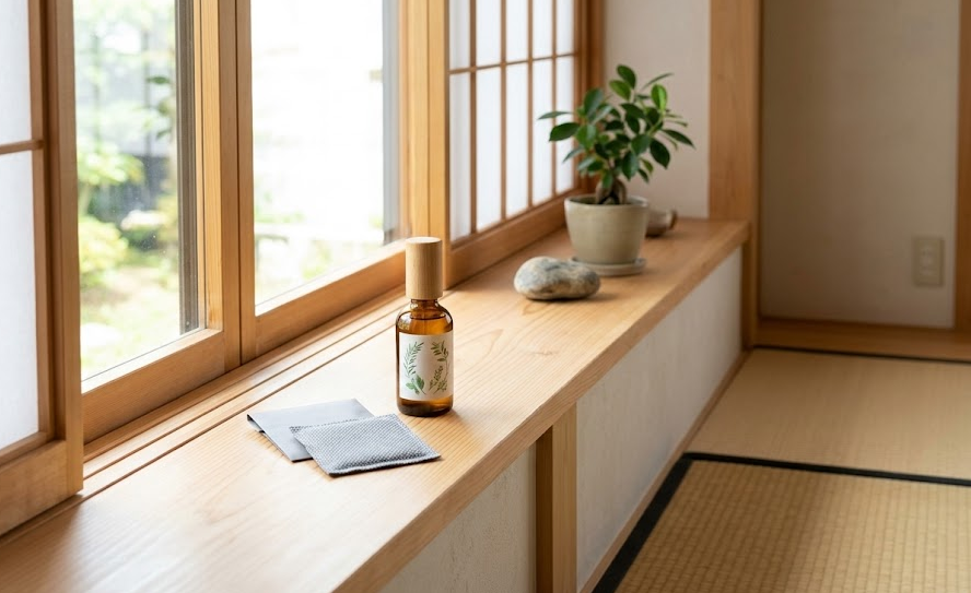 さらに、虫の外からの侵入経路や発生源になりやすい窓際、玄関の隙間、本棚の周りには、「天然由来の防虫・忌避スプレー」を定期的に吹きかけておきます。