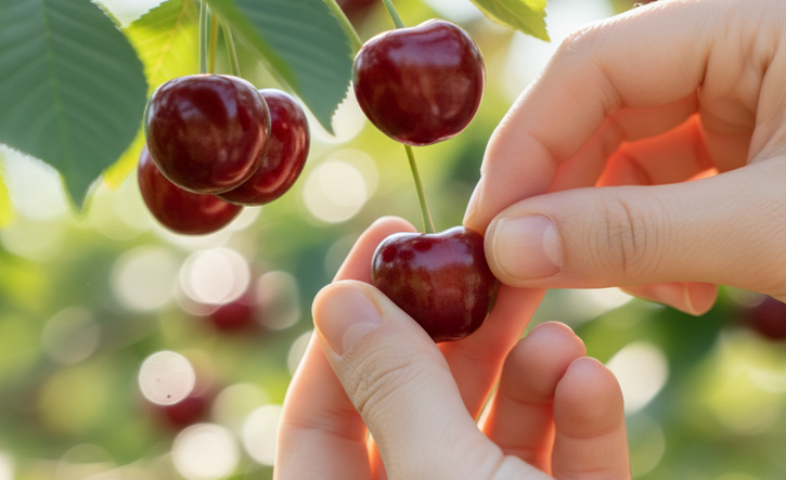 - さくらんぼ狩り:初夏の赤い宝石探し木に実るその姿は、言葉通り「赤い宝石」。太陽の光を浴びてルビーのように輝くさくらんぼを、自分の手でそっと摘み取り、そのまま口に放り込む…これ以上の贅沢があるでしょうか。佐藤錦や紅秀峰といった、普段は少し手を伸ばしにくい高級品種を、時間も忘れ、お腹いっぱいになるまで味わえるのは、産地ならではの特権です。背伸びをしながら、ちょっと高いところにある一番赤いのを狙う。その一連の動作は、まるで宝探し。子供はもちろん、大人だって夢中になってしまう魅力に満ちています。