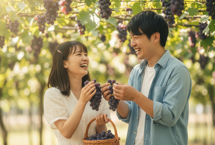 - ポイント: 私自身も、記念日にワイナリーが併併設されたぶどう農園でデートをした経験があるのですが、それはもう最高の時間でした。ぶどう狩りを楽しんだ後、併設のレストランで美味しいランチとワインの試飲を楽しむ。木漏れ日の下で、他愛もない話をしながら笑い合う。そんな、何気ないけれどかけがえのない時間を過ごせます。農園選びの際は、ぜひ周辺のおしゃれなカフェやレストラン、景色の良いスポットなども一緒にリサーチしてみてください。それだけで、デートプランの深みが格段に増しますよ。
