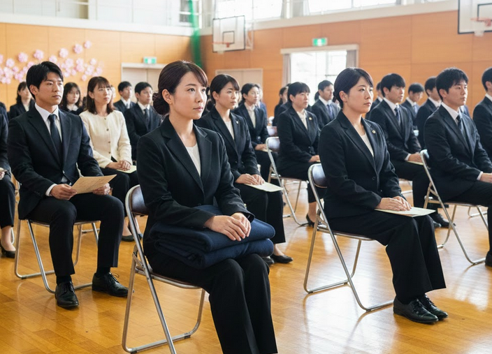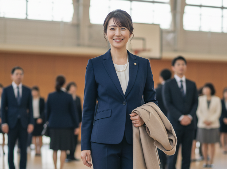 体育館は極寒ですが、その後の教室でのホームルームや、移動中の車内、あるいは当日の気温によっては、厚手のスーツだと逆に暑すぎて汗だくになってしまう可能性があります。