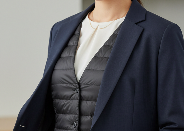 しかし、「スーツの下にダウンなんて着たら、モコモコして着膨れするんじゃない?」「シルエットが崩れてダサく見えそう」と不安に思う方もいるかもしれません。