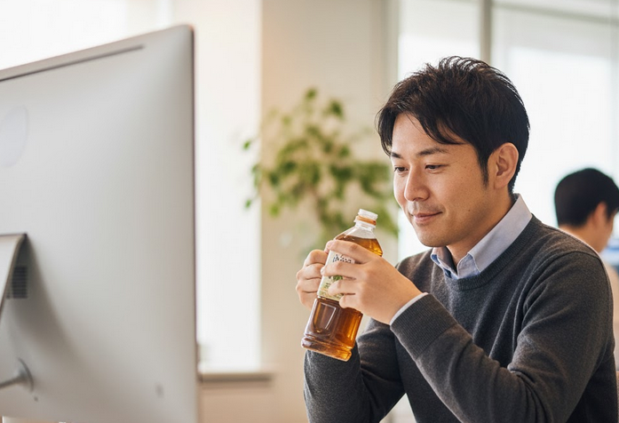 独特の甘みが喉を通り過ぎるたび、「大丈夫、ポリフェノールが戦ってくれている…」と、まるで自分にお守りを飲ませるような感覚でした。ノンカフェインなので、運転中でも安心です。