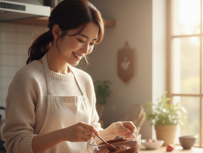 - ポイント: 初めての手作りは、奇をてらわず「王道」で勝負。でも、味は生クリームでしっかり格上げし、「金箔」で「あなたは私にとって特別です」感を演出します。シンプルだけど、一番伝わるアレンジです。