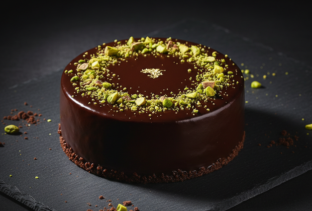 - チョコが乾く前に「アラザン」や「刻みピスタチオ」を少量トッピング。